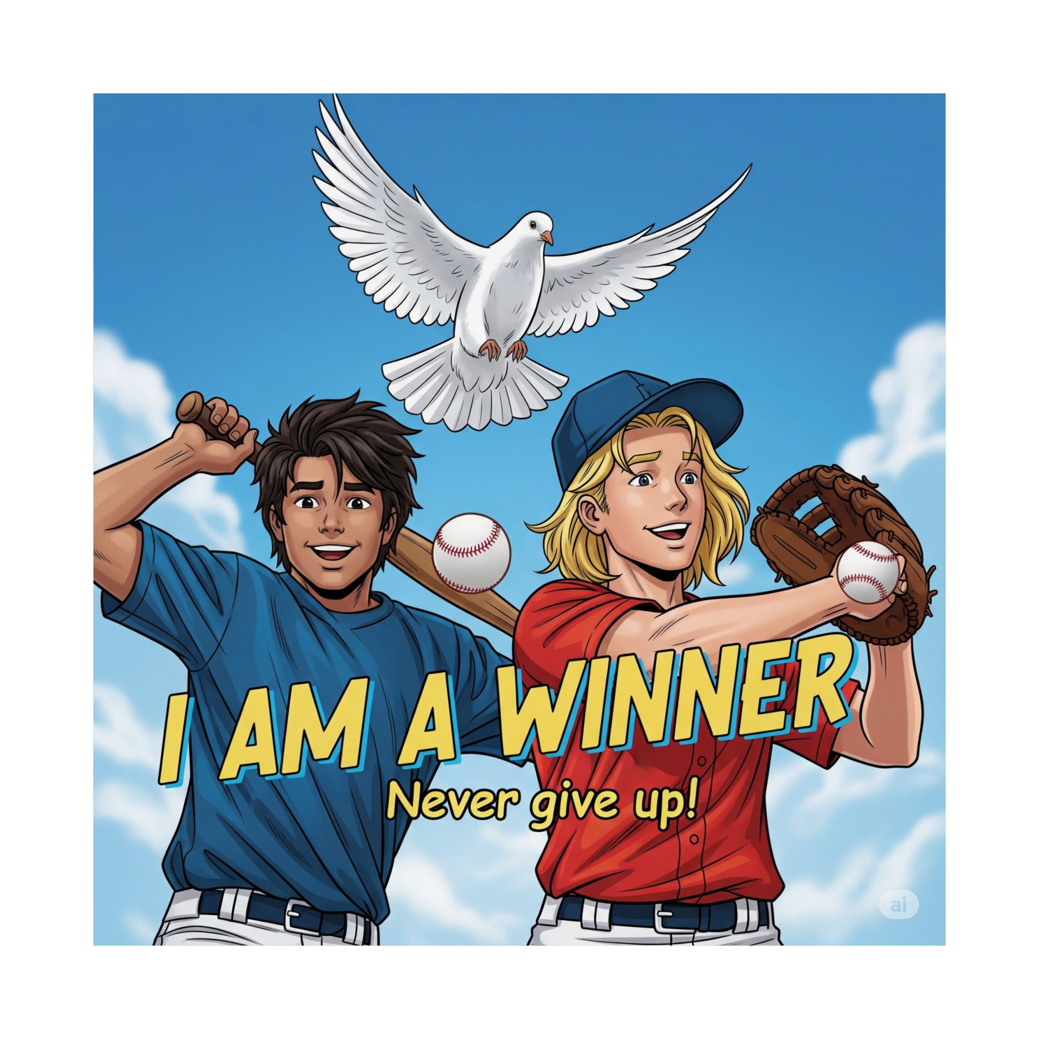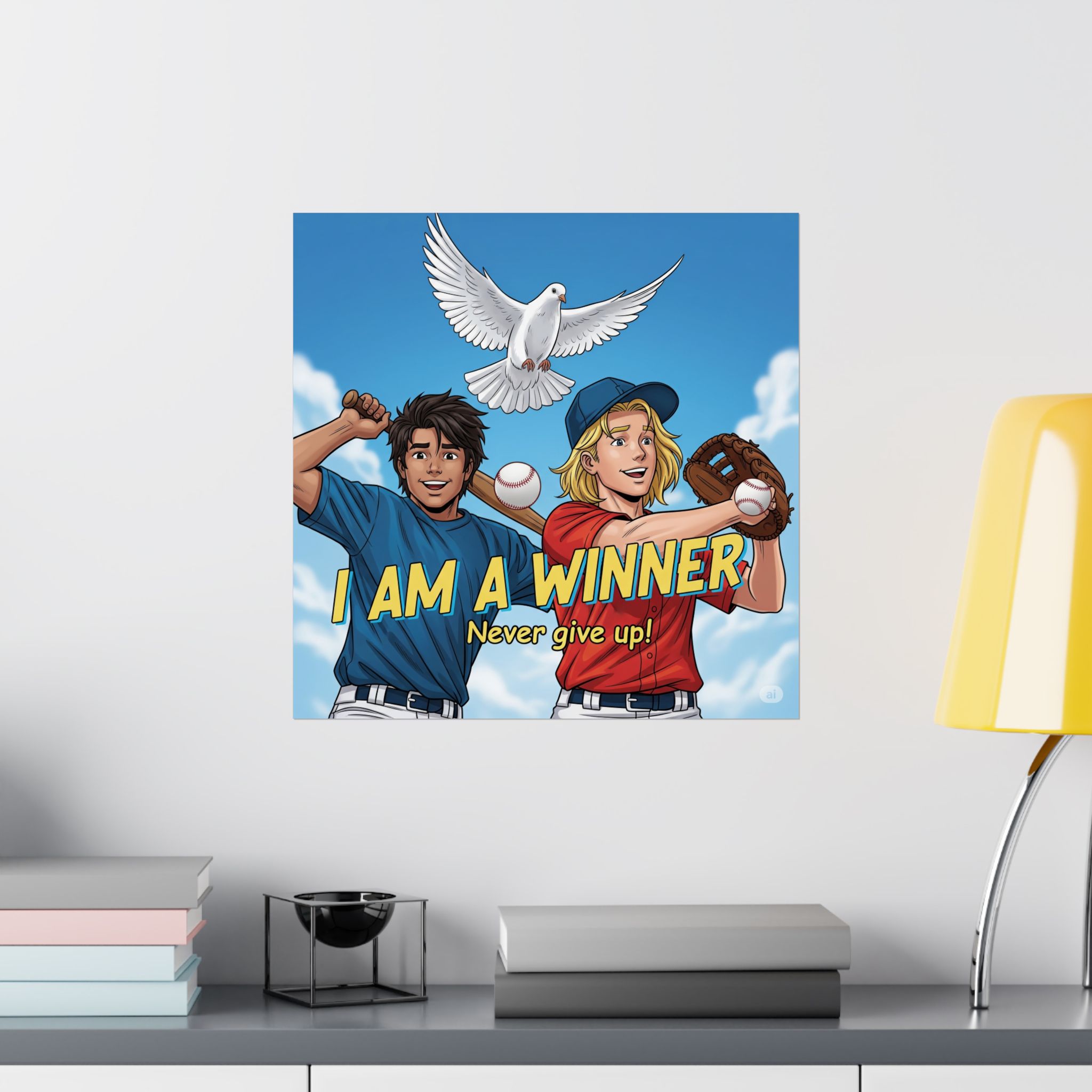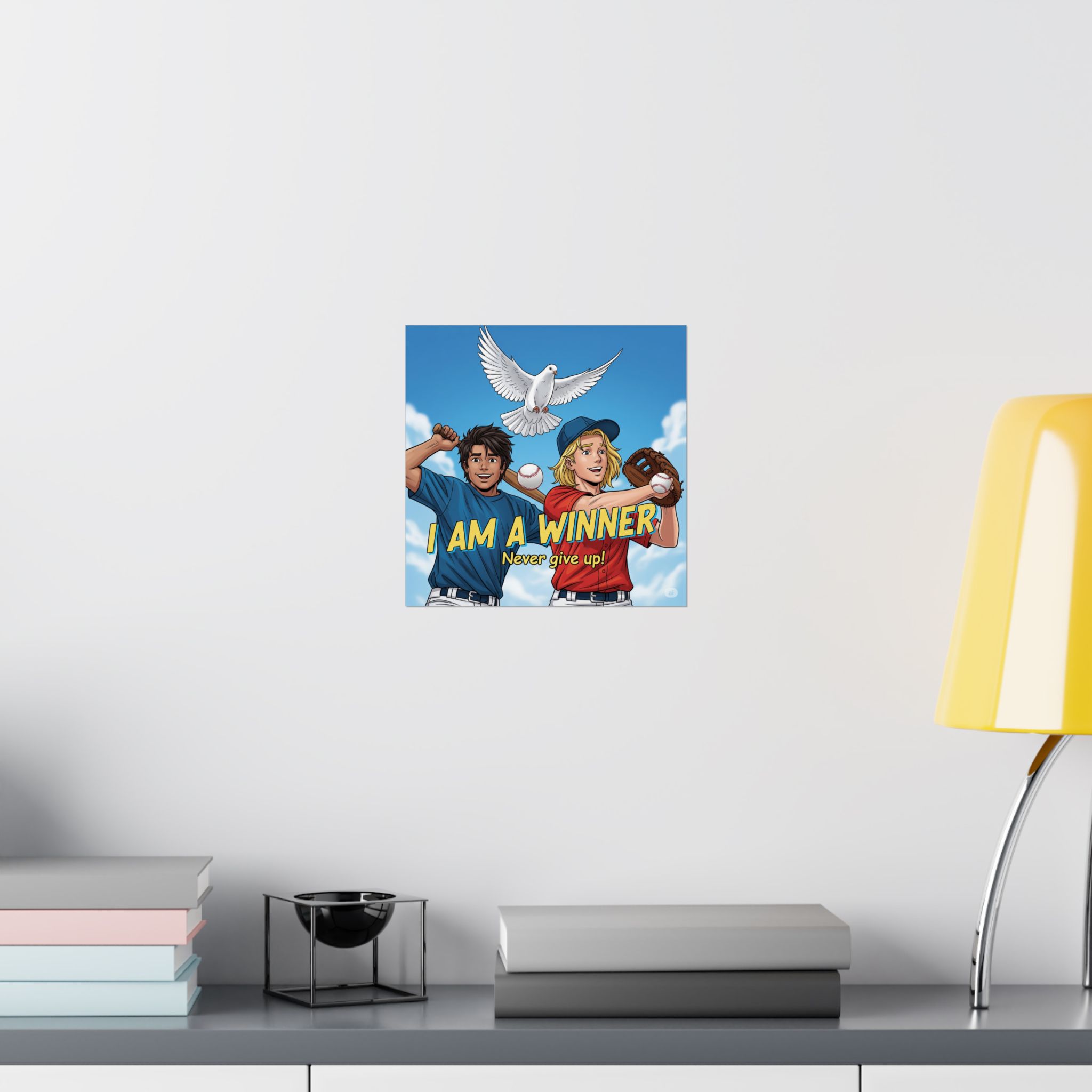 Transformeer je ruimte met deze prachtige matte verticale poster, ontworpen om aan te moedigen tot een winnaarsmentaliteit met de hulp van de Heilige Geest die de duif symboliseert. Met levendige giclée-prints die heldere kleuren vastleggen, is deze poster perfect voor een jongere die affiniteit heeft met de honkbal sport.