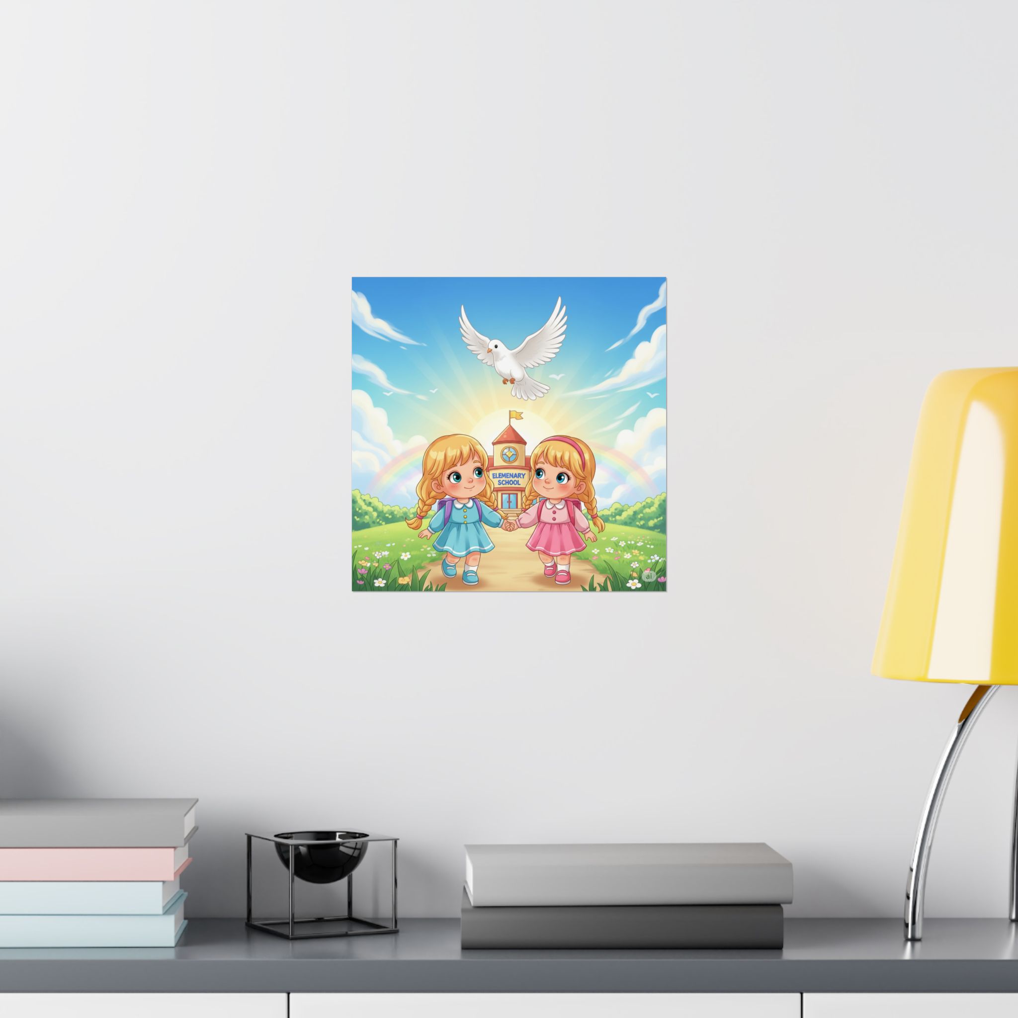 Poster I Meisjes bij school I Kinderruimte decor I Basisschool