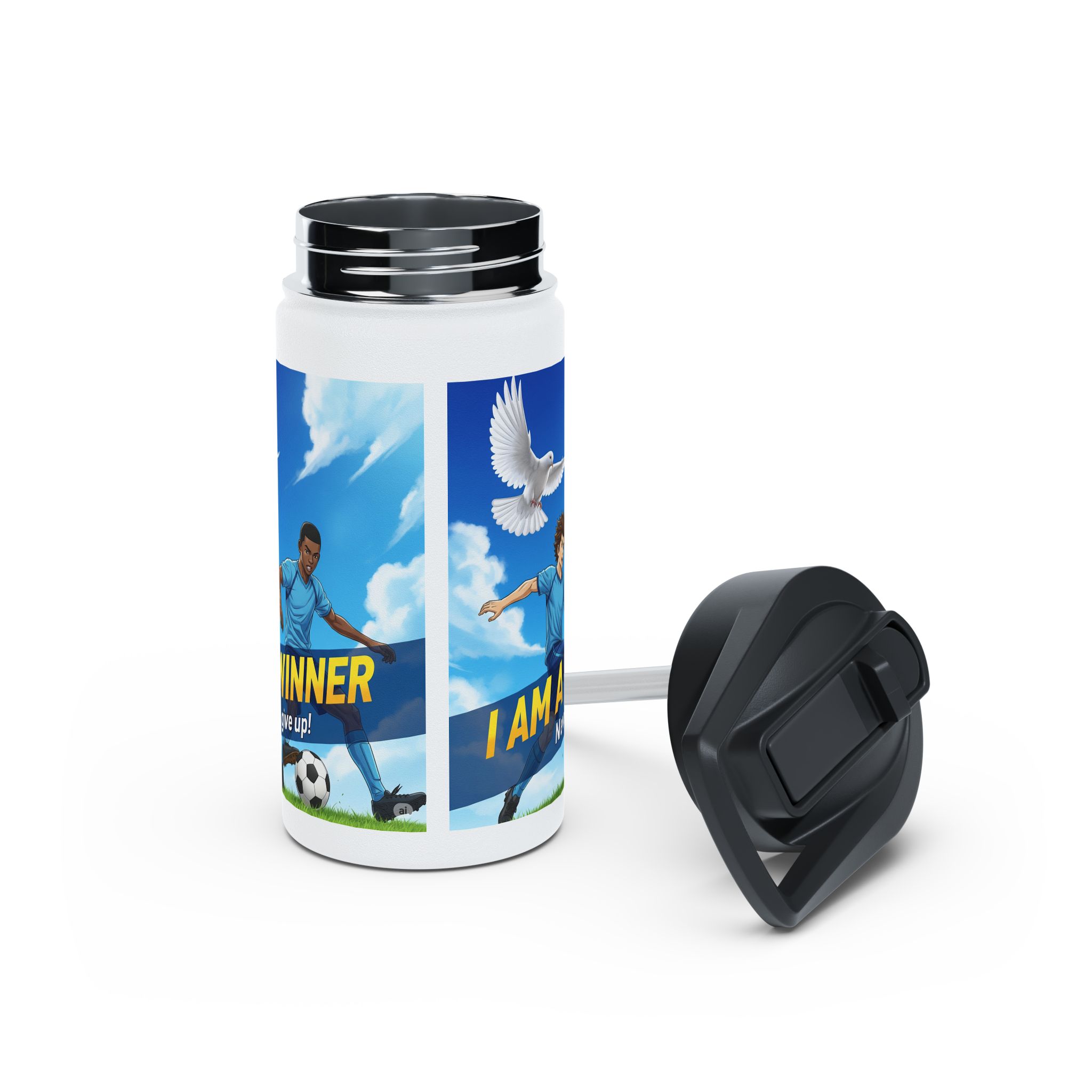 Blijf geïnspireerd en gehydrateerd met deze prachtige roestvrijstalen waterfles. Ontworpen voor ieder kind dat onderweg is en affiniteit heeft met de voetbal sport. Deze duurzame fles heeft een levendig en kleurrijk design, waardoor het een leuke en stimulerende accessoire is voor de dagelijkse routine van de sporter.